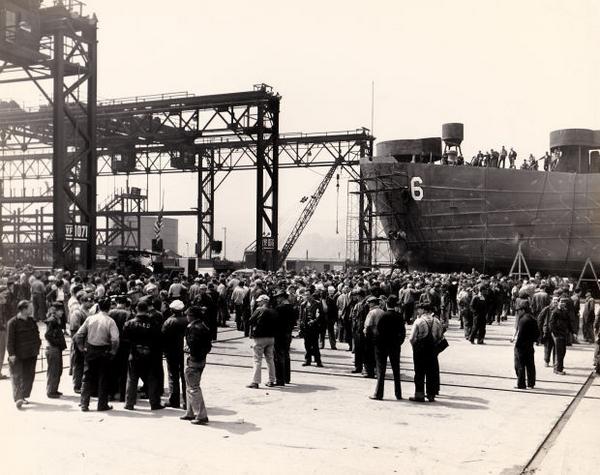 American Bridge’s entire capacity was utilized for National Defense projects from 1941-1945. American Bridge manufactured 199 LST’s as well as four Aviation Repair Vessels, major components for 11 Essex Class Aircraft Carriers, one Super-aircraft Carrier, and 31 Auxiliary Converted Aircraft Carriers, 77 C Type Cargo Ships, four Tankers, 20 Cargo Lighters, and 348 Knock-down Barges.